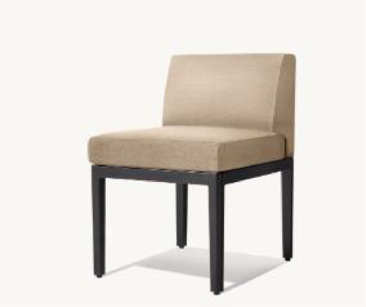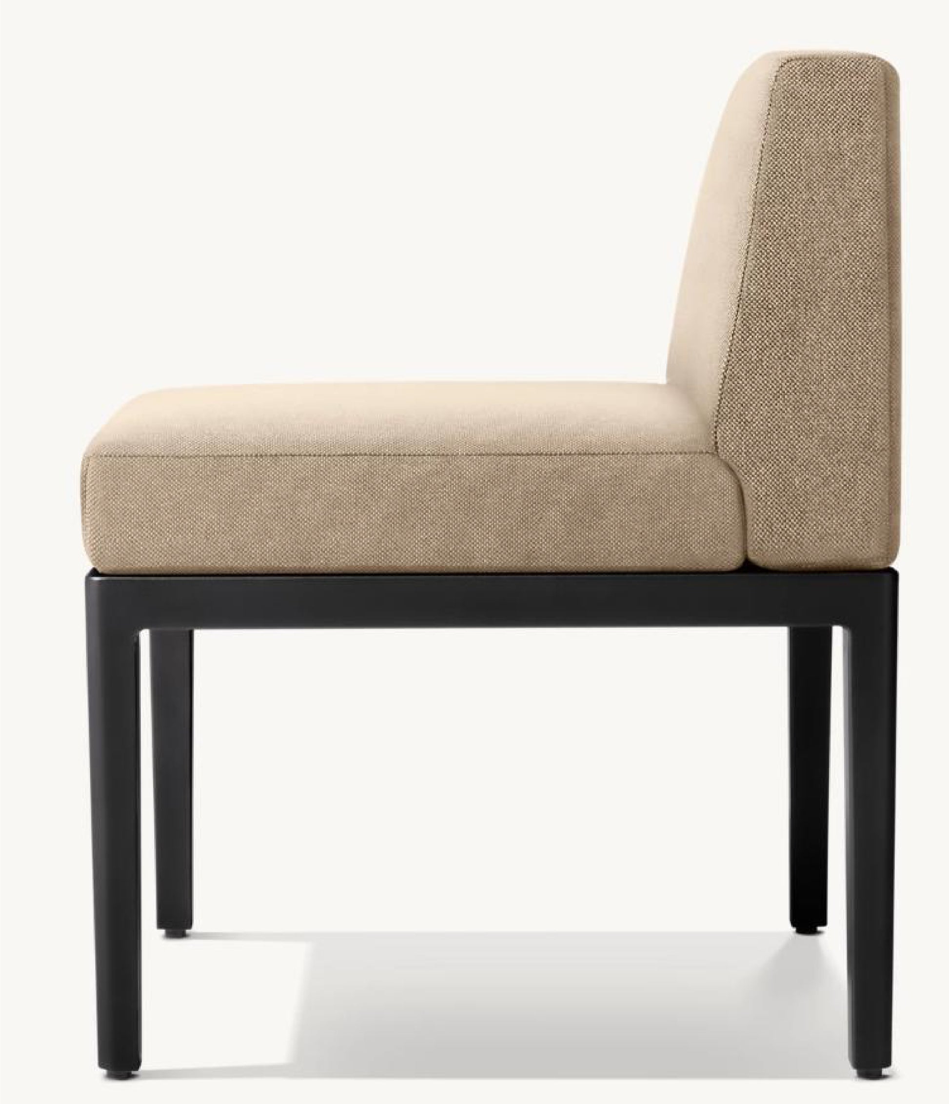 The Sande Armless Dining Chair offers a clean, contemporary profile with effortless versatility. Its tailored, all-weather cushions rest on a powder-coated aluminum frame with subtly tapered legs, creating a refined yet relaxed seating option. Designed to blend seamlessly into any dining setting, this piece is all about minimalist comfort with enduring style.