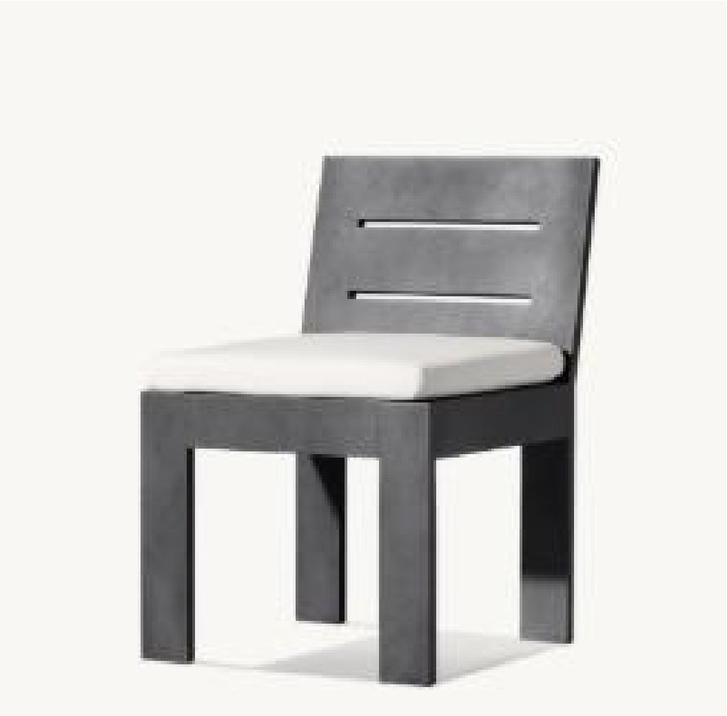 The Bella Armless Dining Chair distills outdoor seating to its purest form with bold simplicity and refined comfort. Its thick powder-coated aluminum frame and double-slat backrest offer clean lines and lasting durability, while the padded seat provides a soft, supportive feel. Ideal for maximizing space without compromising style.
