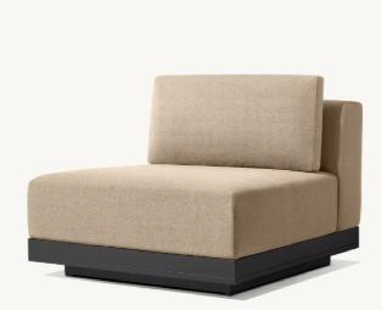 The Sande Armless Sofa offers modular elegance in one-, two-, or three-seat configurations. Its streamlined silhouette features plush, low-profile cushions atop a minimalist platform base, blending comfort and modern design. Perfect as a standalone piece or paired with other modular elements, this armless form provides clean versatility for indoor or outdoor lounge settings.
