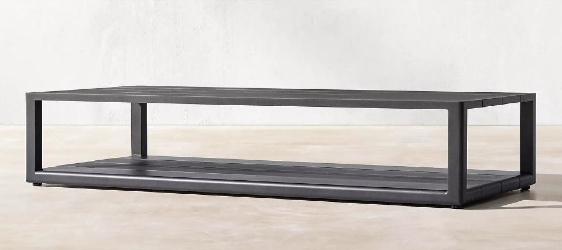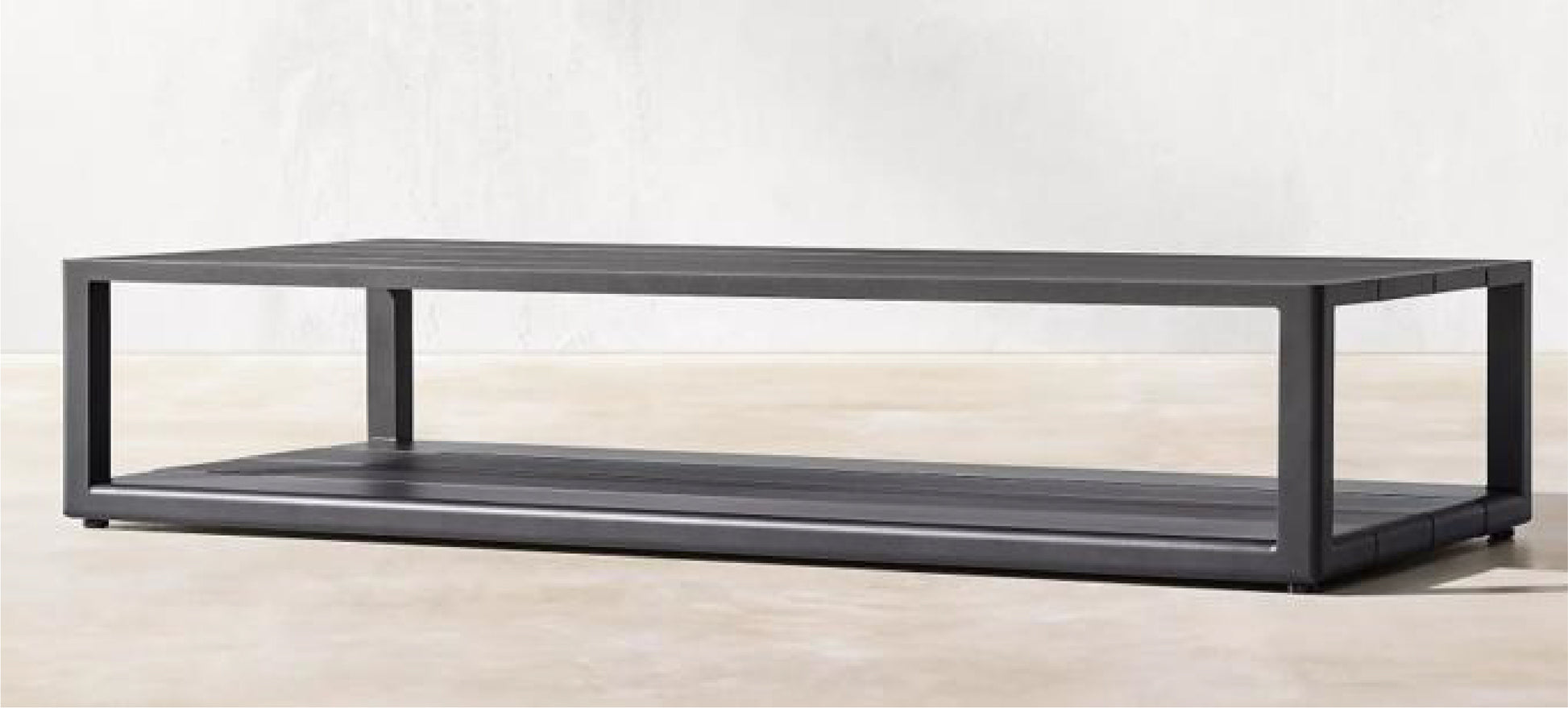 The Margo Coffee Table exudes minimalist elegance with its sleek aluminum frame and open-shelf design. Its sturdy, rectangular structure and smooth surface make it a functional, modern centerpiece for outdoor lounging spaces.