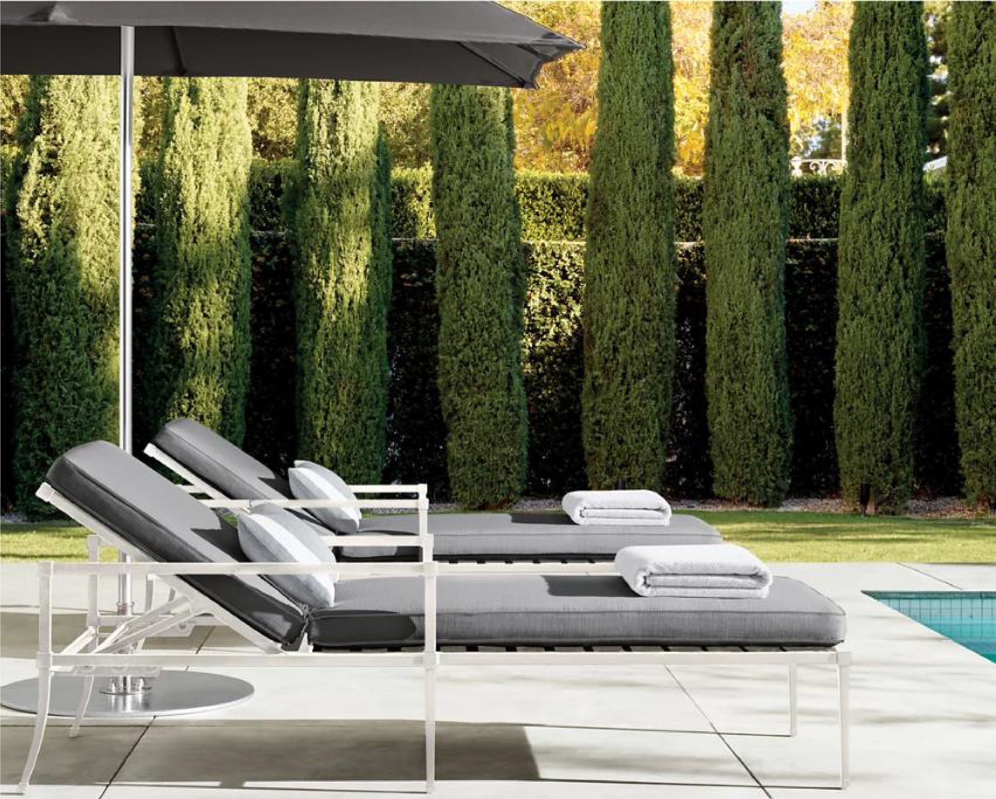 Sculptural yet refined, the Tisdale Day Bed offers elevated outdoor lounging with a gracefully arched aluminum frame and X-brace detailing. Adjustable for personalized comfort, its tailored cushions provide plush support, blending timeless design with modern durability. Ideal for poolside relaxation or sun-drenched patios.