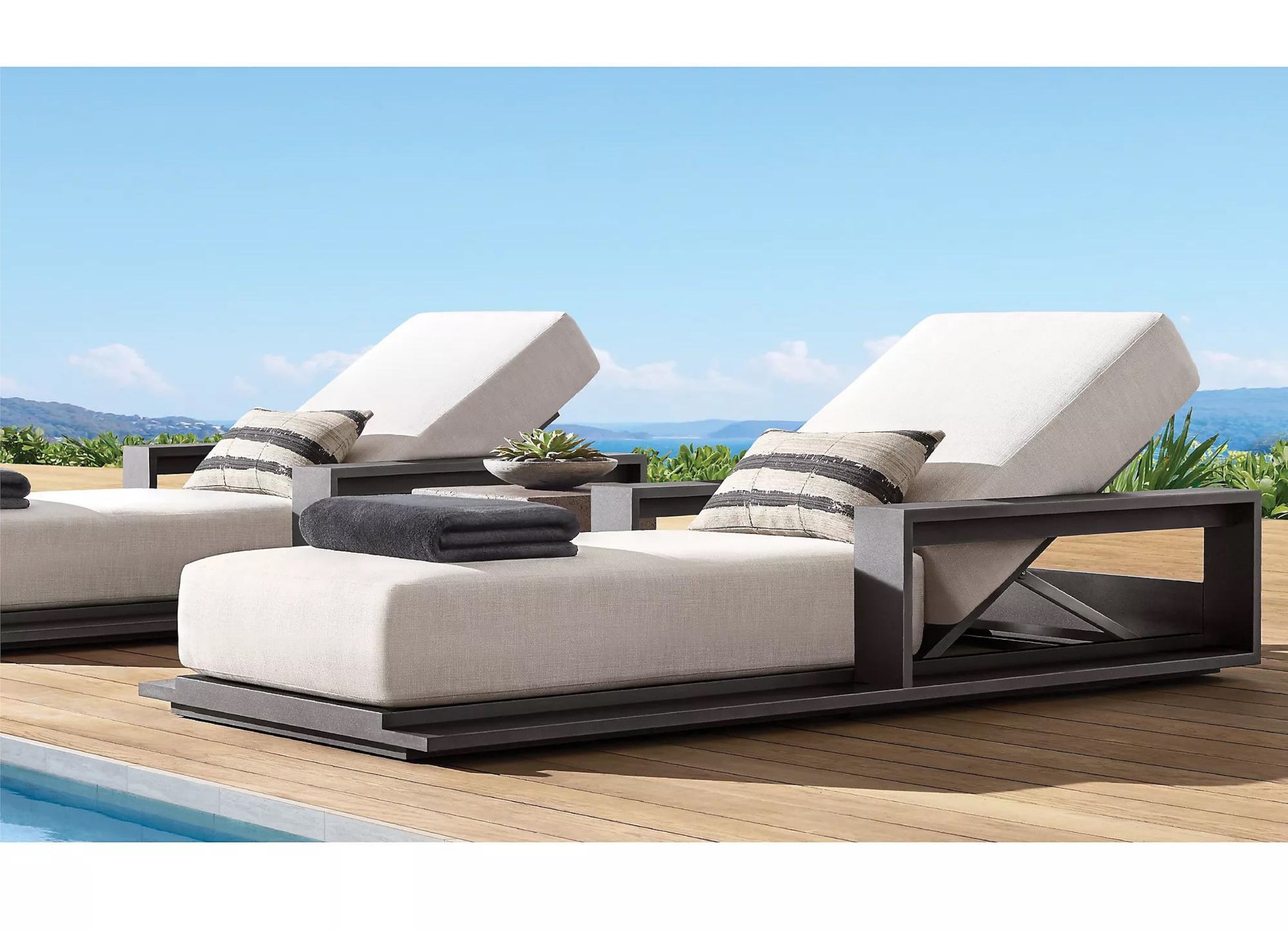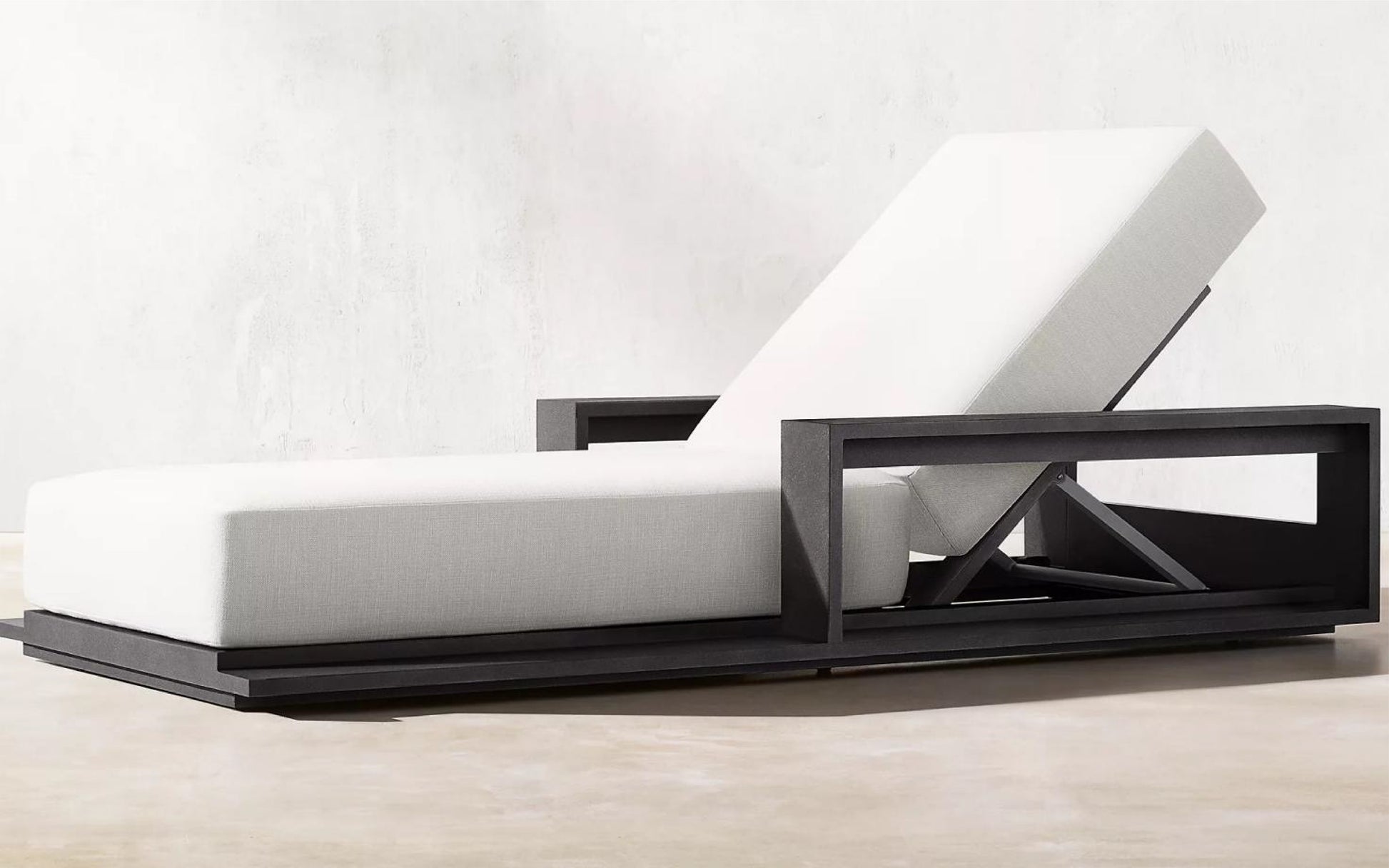 The Batia Day Bed offers luxurious relaxation with its powder-coated aluminum frame and plush, white cushions. Featuring an adjustable backrest and integrated side shelves, it provides a sleek, modern design for ultimate outdoor comfort and versatility.