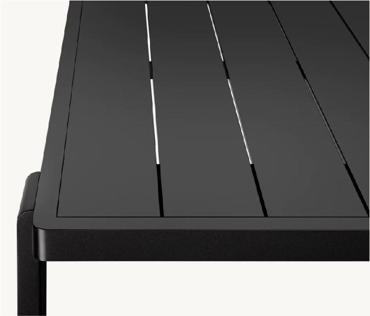 The Vita Dining Table brings modern simplicity and durable design to your dining space. Crafted from powder-coated aluminum with a slatted top for subtle texture and drainage, its clean lines and robust frame make it a standout centerpiece for outdoor gatherings or indoor meals. Engineered for style and built to last, this table seats plenty while maintaining a sleek, minimalist profile.