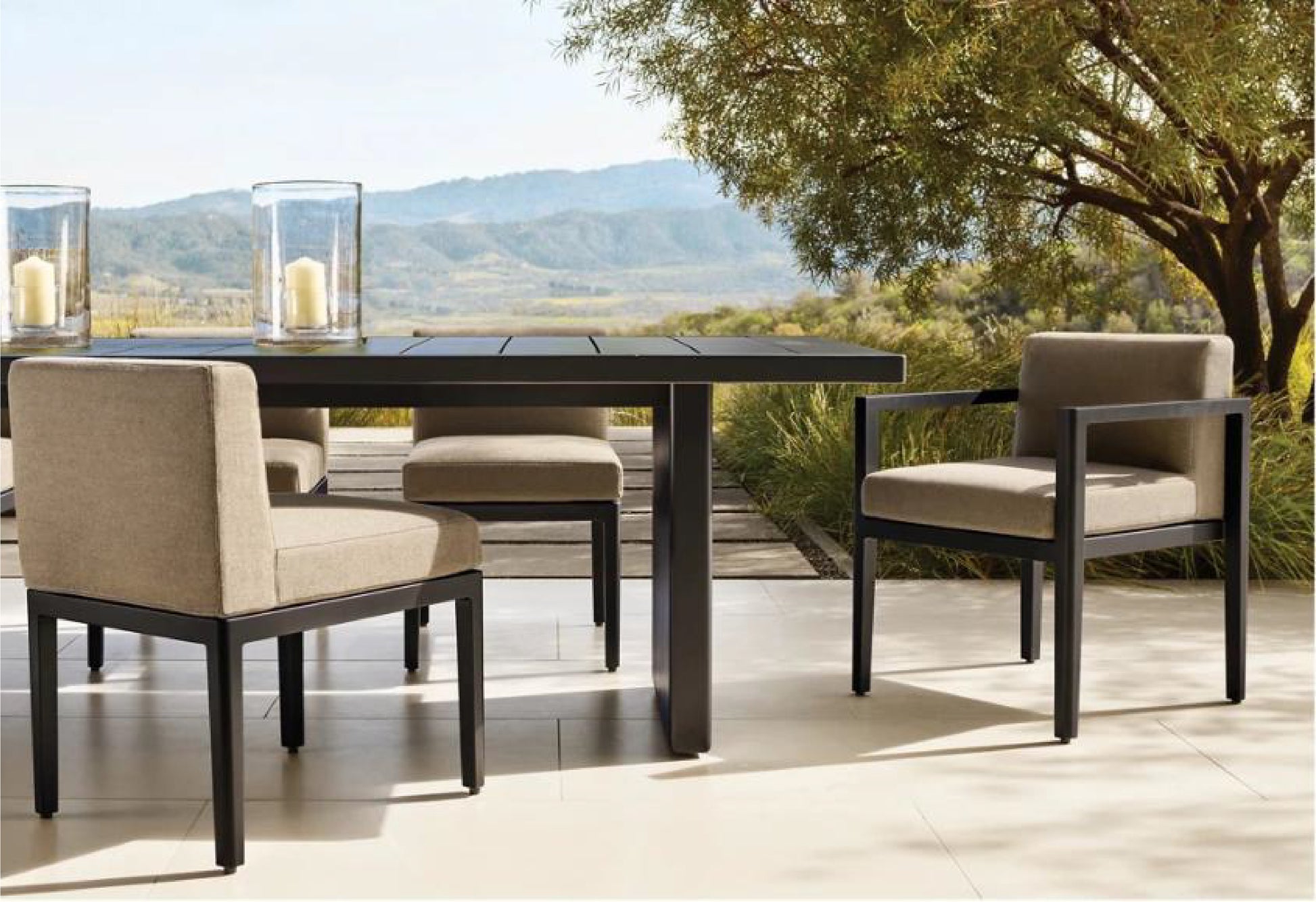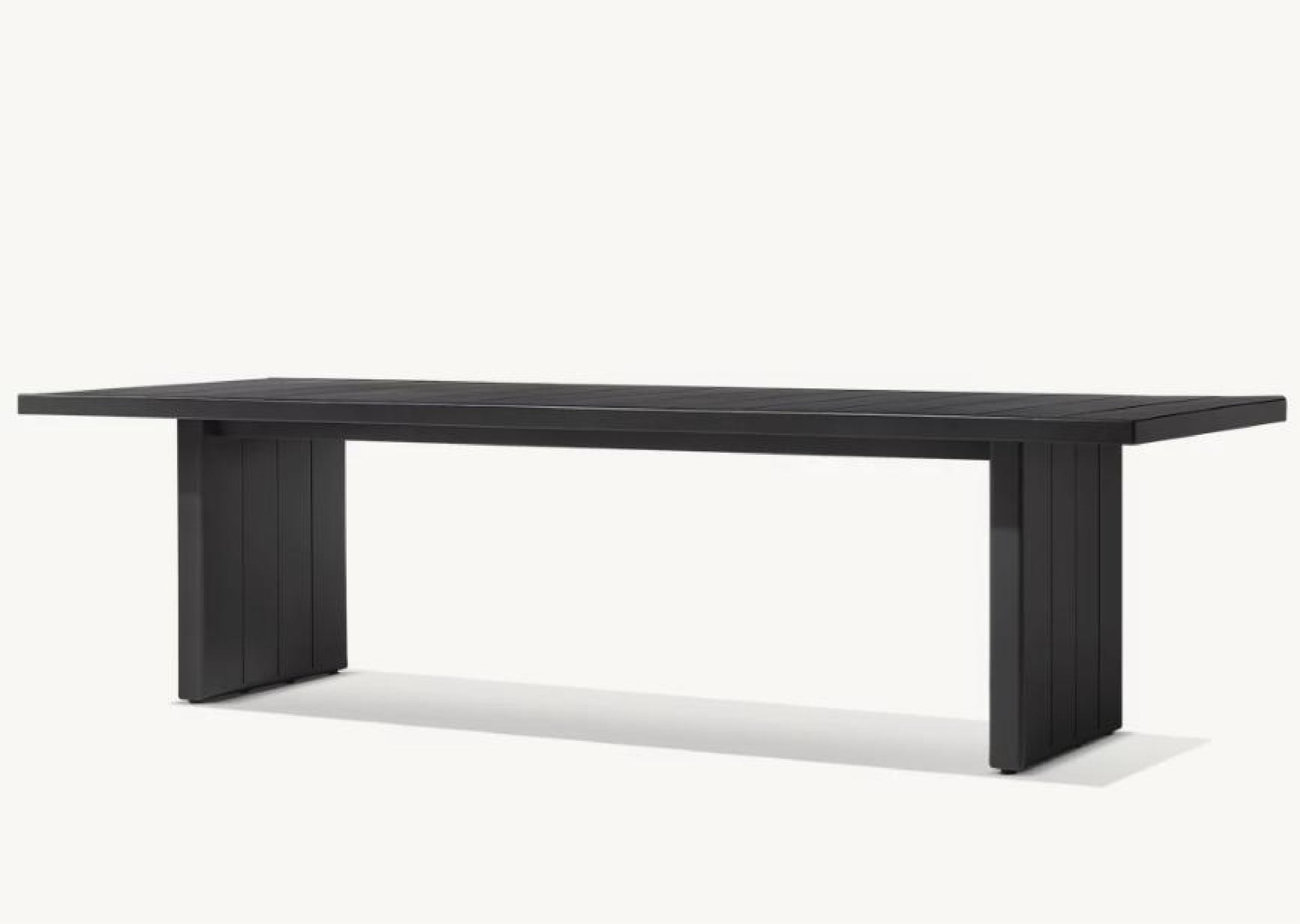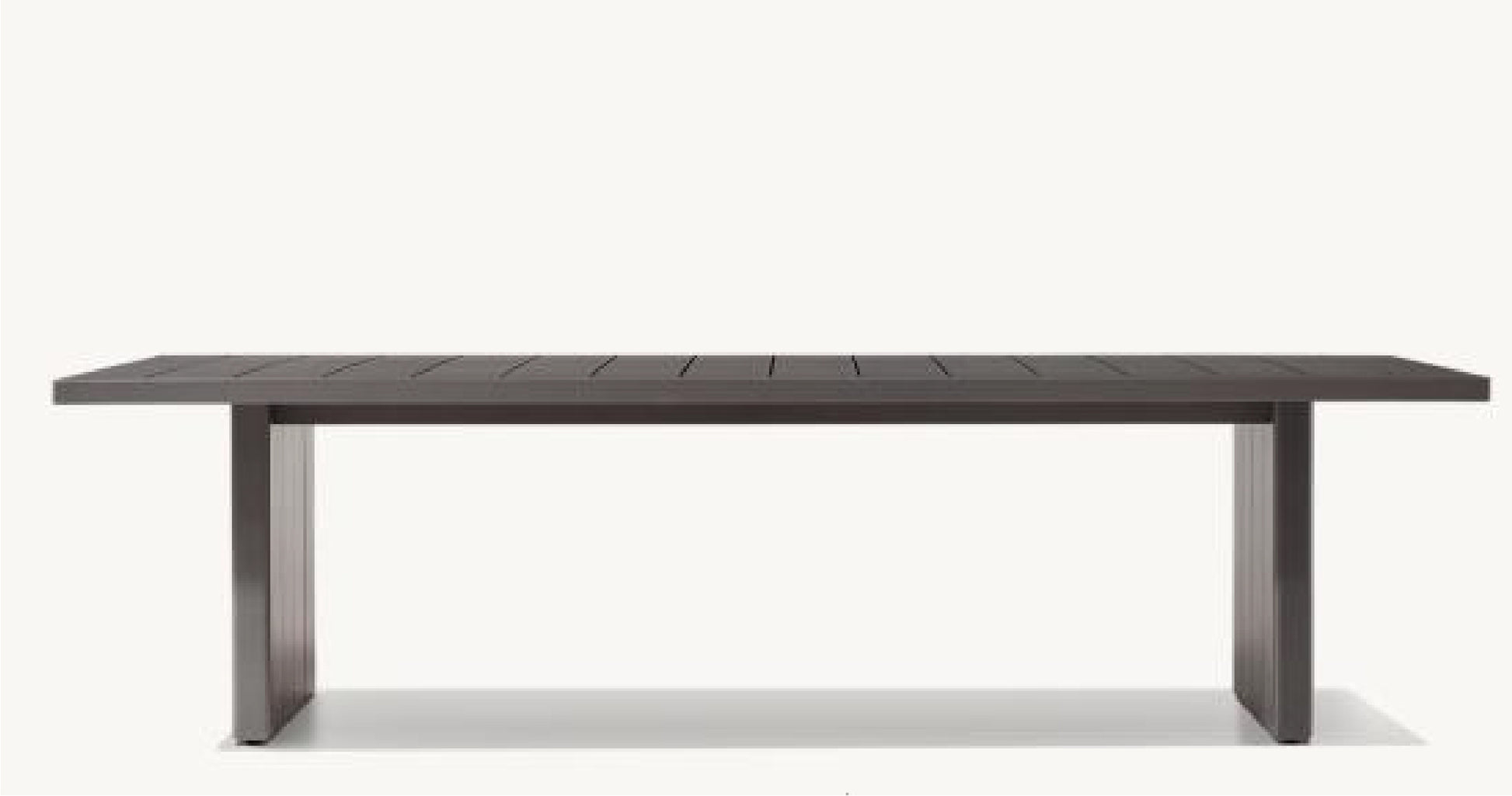The Sande Dining Table is a minimalist statement piece built for gathering. With a wide, slatted top and bold panel legs, its clean geometry anchors any dining space with strength and simplicity. Constructed from powder-coated aluminum for all-weather durability, it pairs seamlessly with Sande dining chairs to create a cohesive, modern outdoor setting.