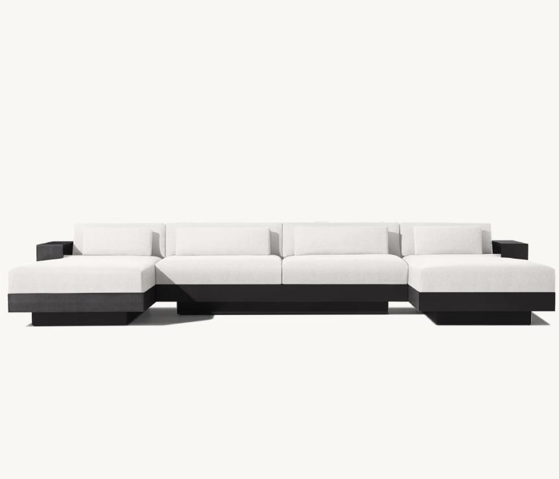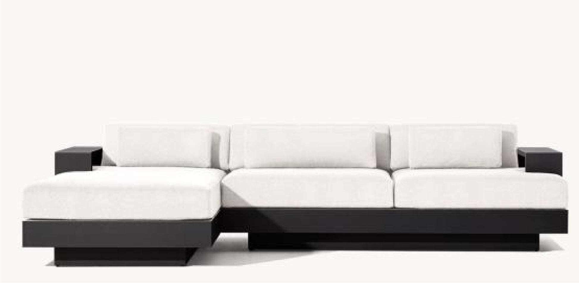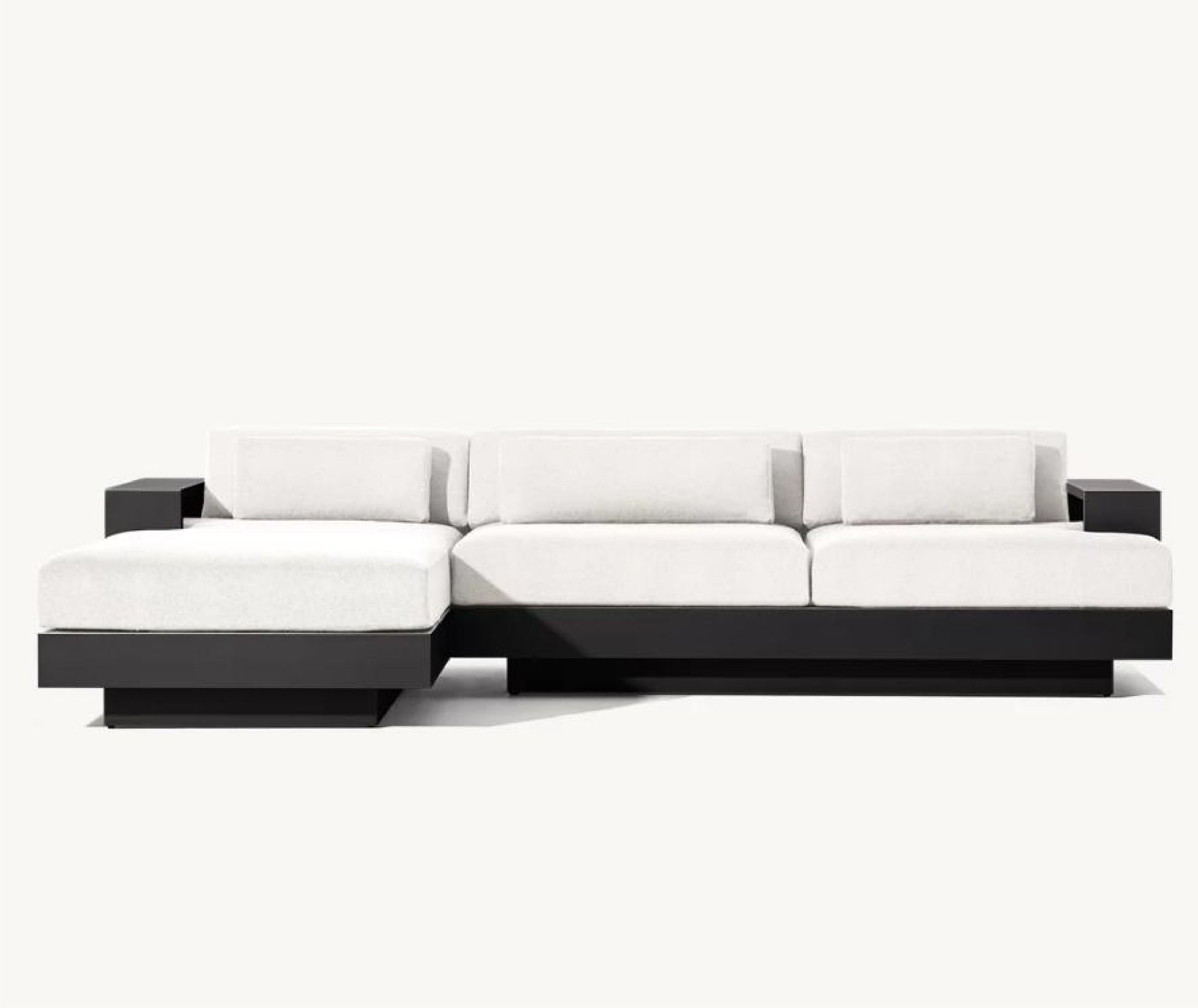 The Casablanca Left/Right Arm Chaise combines modern design with ultimate relaxation, featuring a powder-coated aluminum frame and plush, neutral cushions. Its extended chaise section and integrated shelving make it a stylish, functional addition for luxurious outdoor lounging.