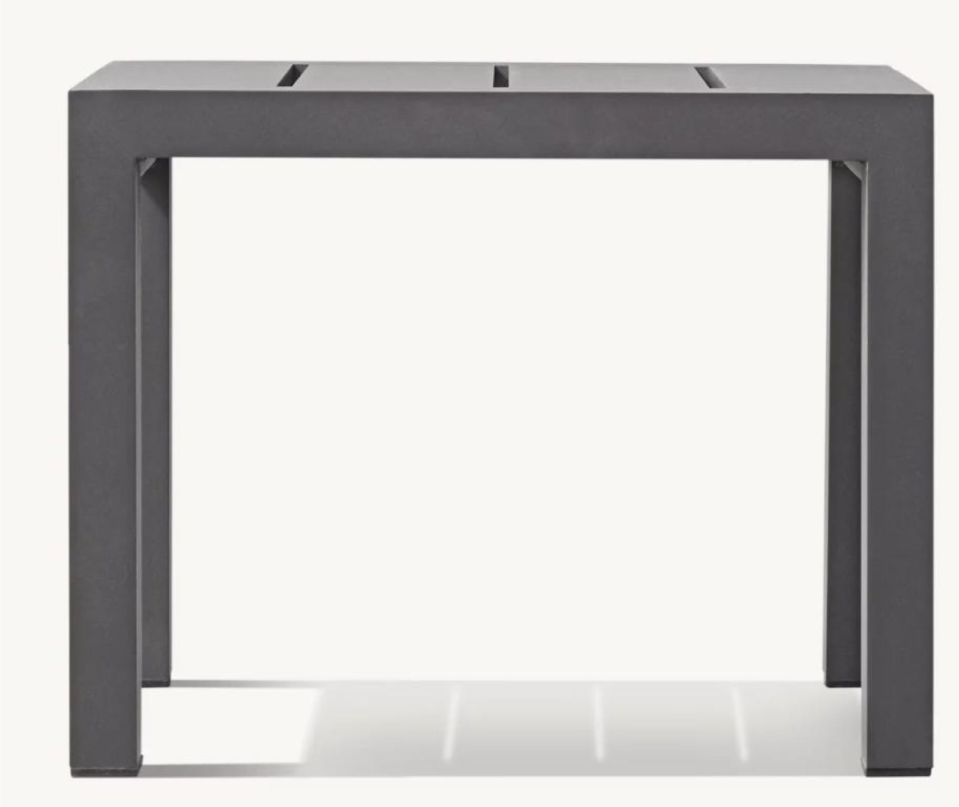 The Aeden Side Table offers minimalist functionality with its powder-coated aluminum construction and sleek, square design. Its sturdy frame and slatted top provide a modern, practical accent for any outdoor seating arrangement.