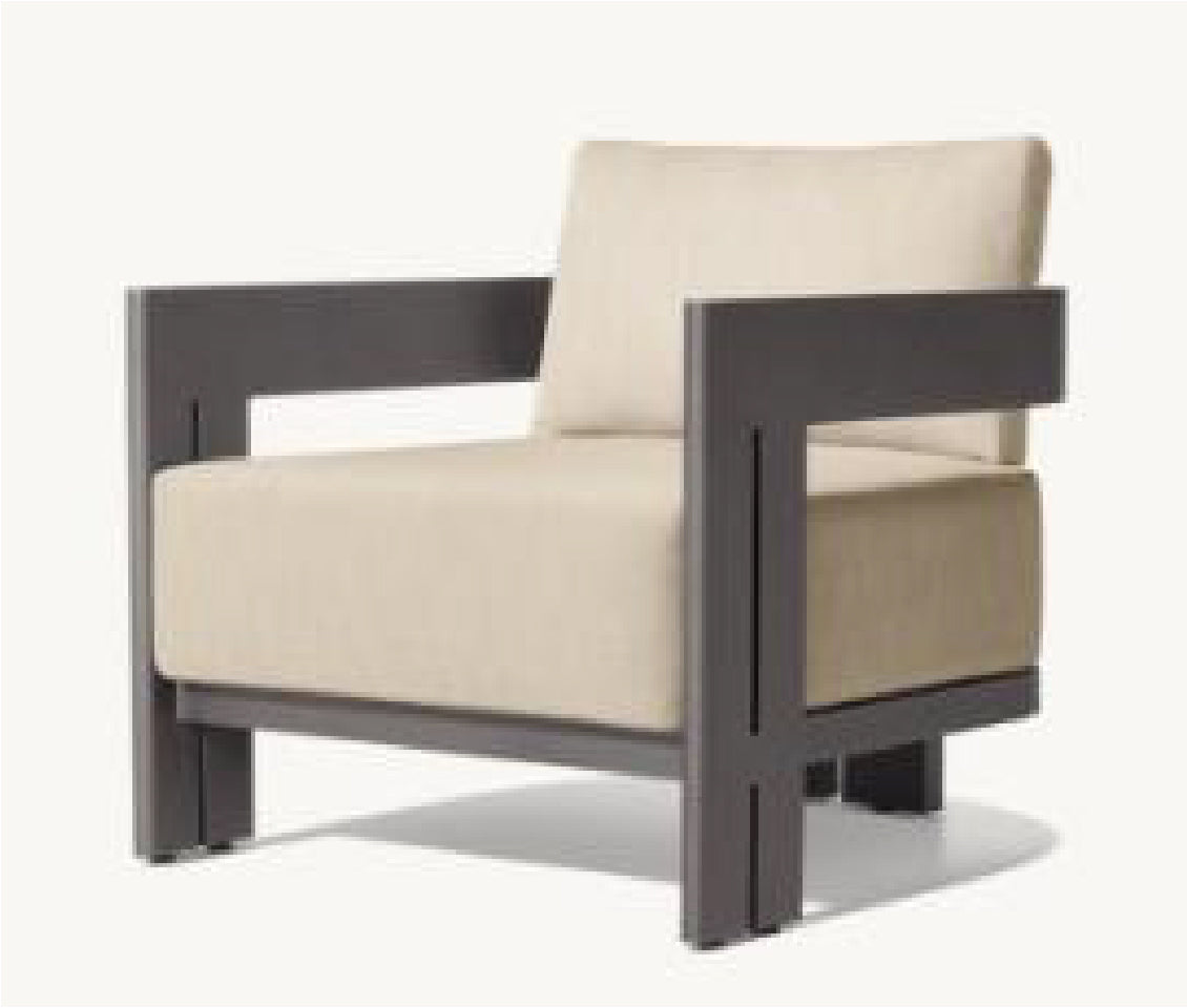 The Mati Single Sofa distills the collection’s architectural strength into a compact, statement-making form. Featuring a bold aluminum frame with distinctive slotted detailing and ultra-plush cushions, it offers comfort without compromise. Ideal for standalone use or as part of a larger seating arrangement, this piece delivers sculptural impact with a relaxed, refined feel.