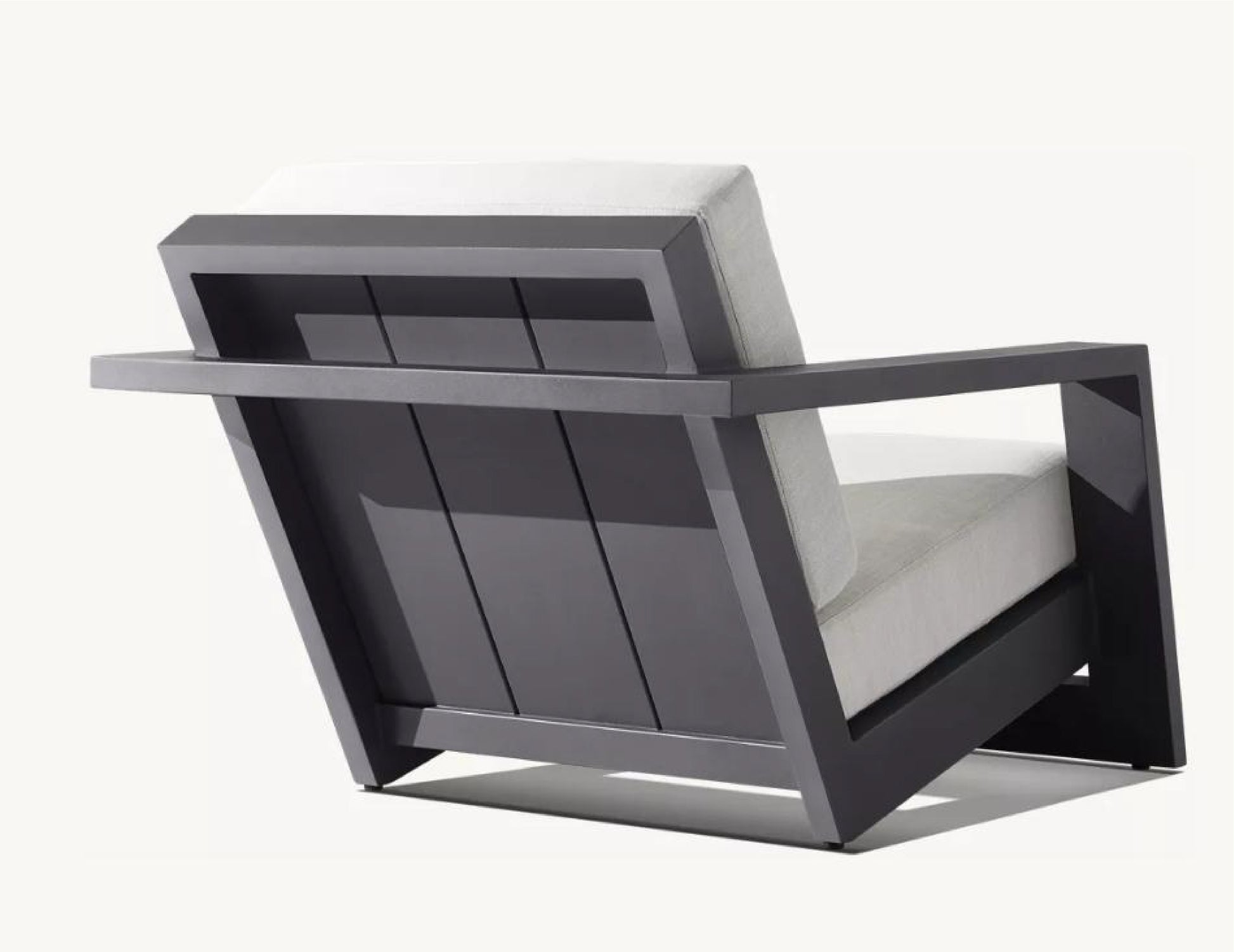 The Ray Single Sofa blends sculptural strength with deep comfort. Featuring bold, angular arms and a wide, low frame in powder-coated aluminum, it offers modern architectural appeal. Paired with ultra-plush cushions, this piece is equally suited for statement solo seating or as part of a larger outdoor arrangement. Built to perform, designed to impress.