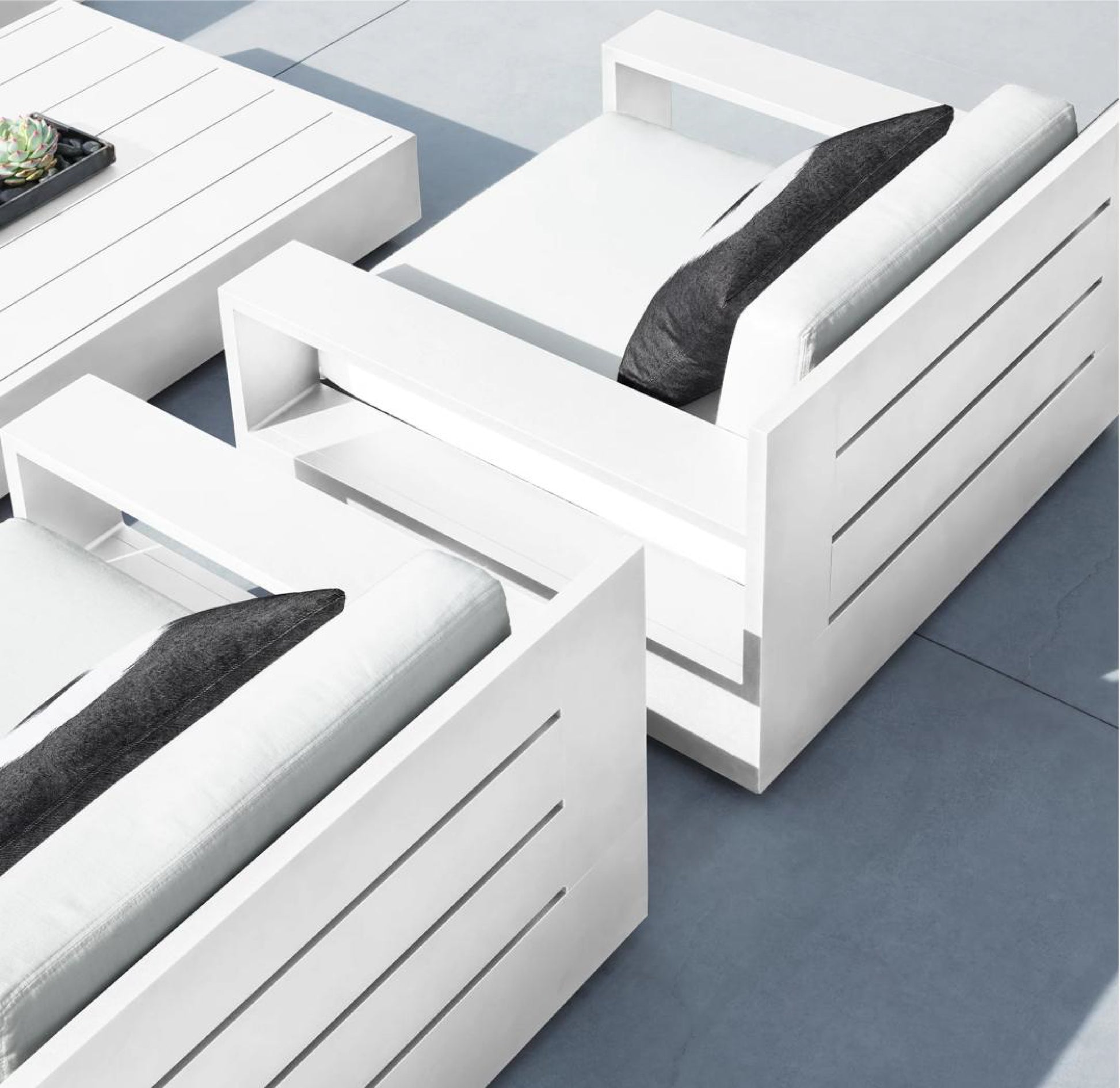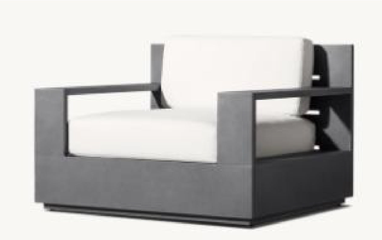 The Bella Single Sofa showcases crisp modern lines and a distinctly architectural frame. Crafted from powder-coated aluminum with bold slat detailing, its squared form contrasts beautifully with the plush, deep cushions. Designed for both comfort and impact, this piece adds a sculptural edge to any indoor or outdoor seating area—available with an optional swivel base for added versatility and ease.