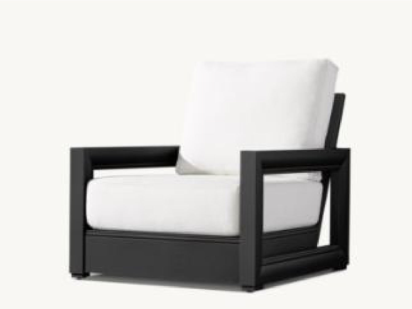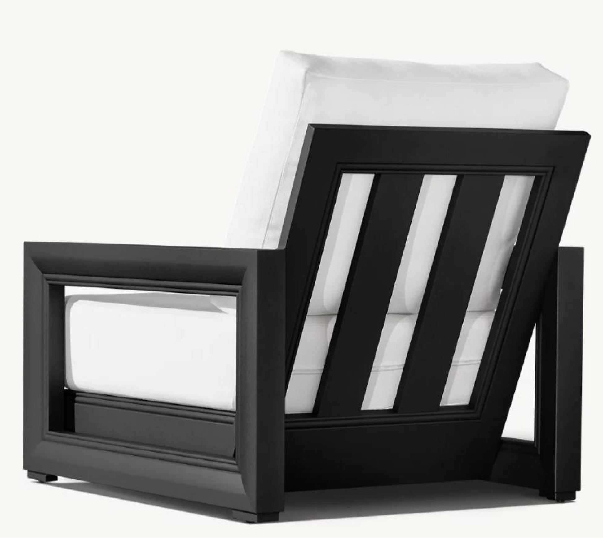 The Cossa Single Sofa is a bold yet inviting piece that balances structured design with deep comfort. Its angled slatted backrest and box-arm frame bring an architectural quality, while the plush cushions provide a relaxed seating experience. Crafted from powder-coated aluminum, it’s built for durability and makes a refined statement in any setting.