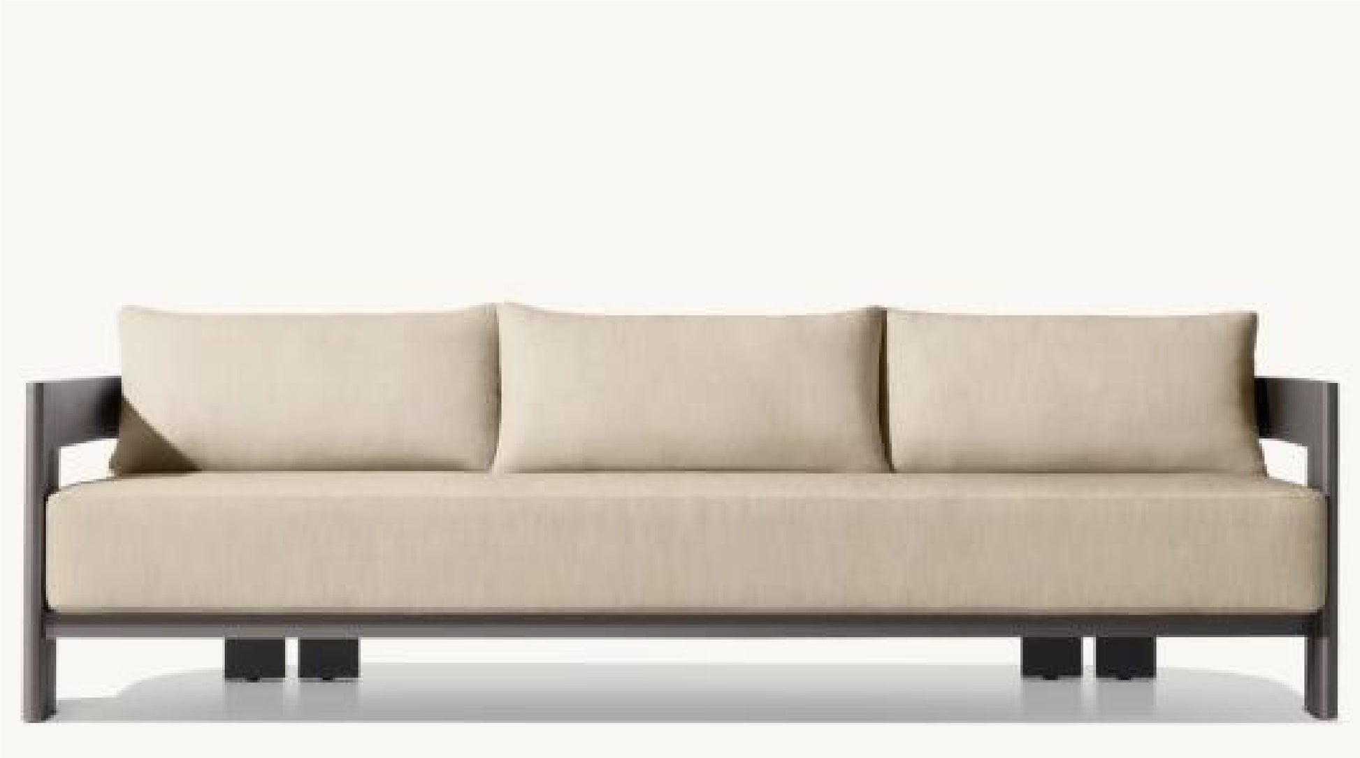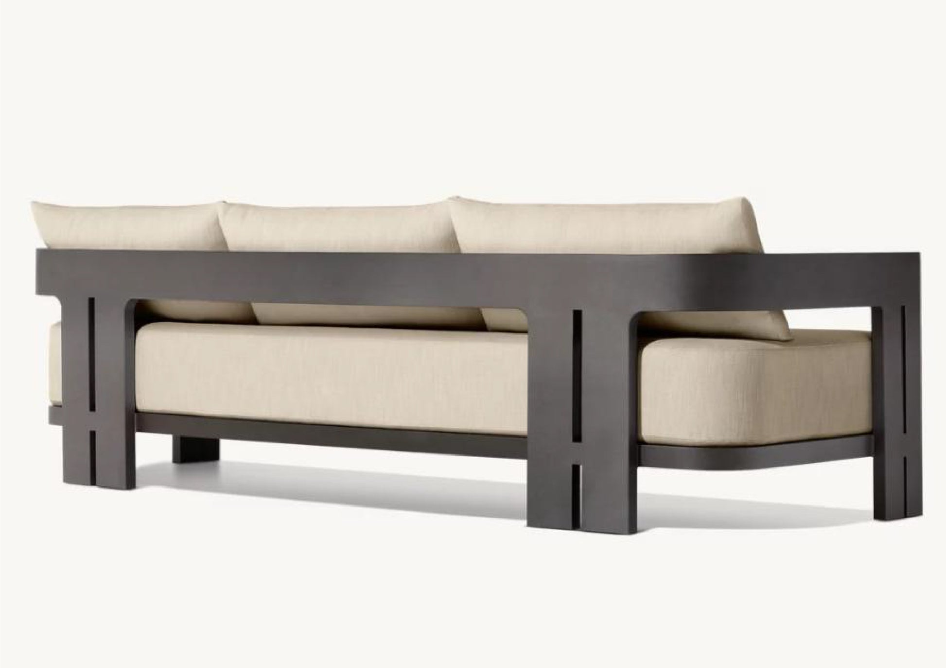 The Mati Sofa pairs geometric precision with relaxed luxury. Its bold, cutout aluminum frame creates a modern architectural silhouette, while the deep, generously padded cushions offer inviting comfort. Designed for durability and elegance, this piece anchors any space with effortless sophistication—perfect for both outdoor lounging and indoor statement seating.
