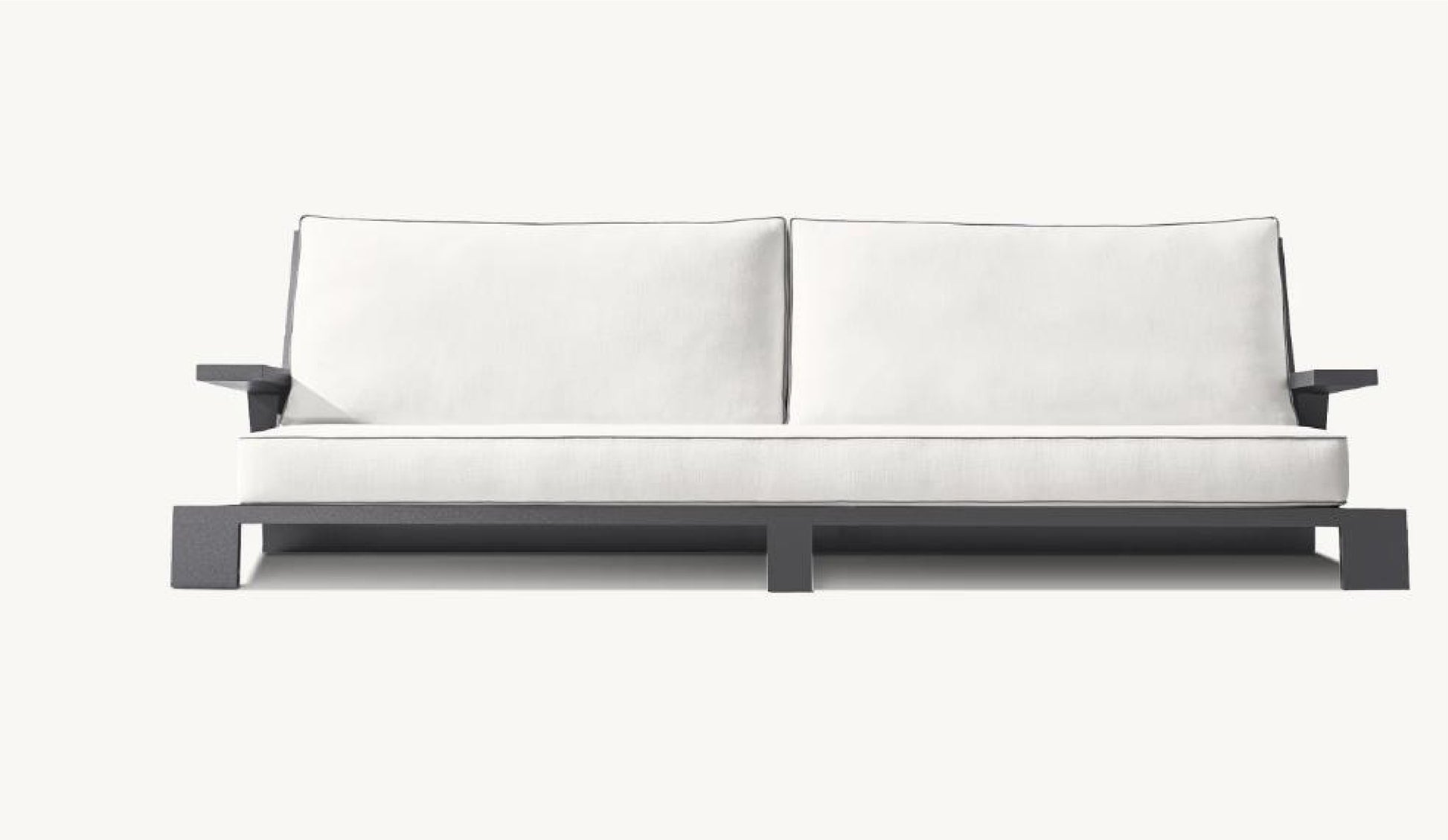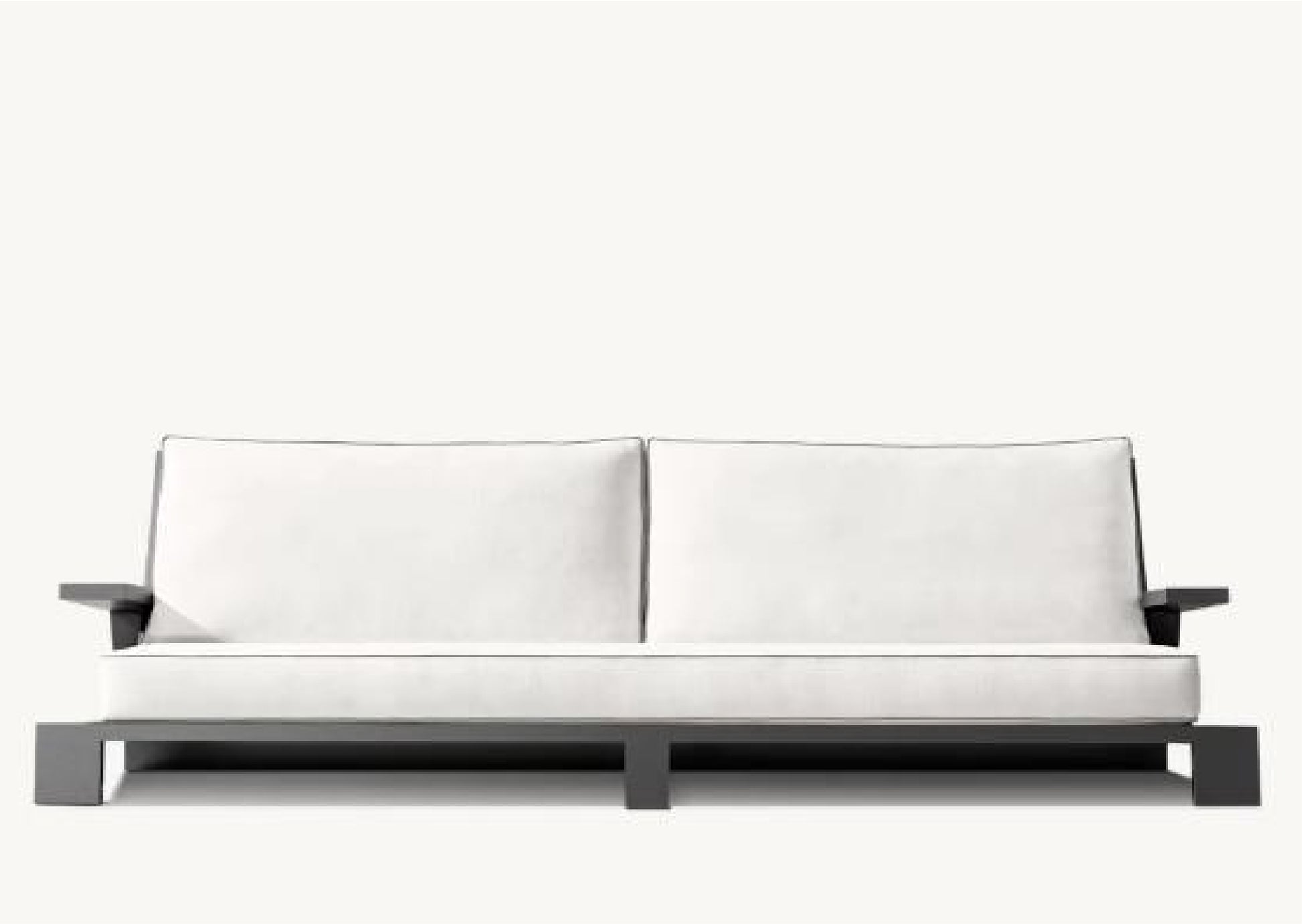 The Olli Sofa captures the essence of modern outdoor design with bold geometry and plush comfort. Its angular frame features wide arms and a solid base that grounds the piece, while deep cushions provide relaxed support. Ideal for open-air lounging or indoor statement seating, the Olli Sofa combines sculptural style with everyday durability.