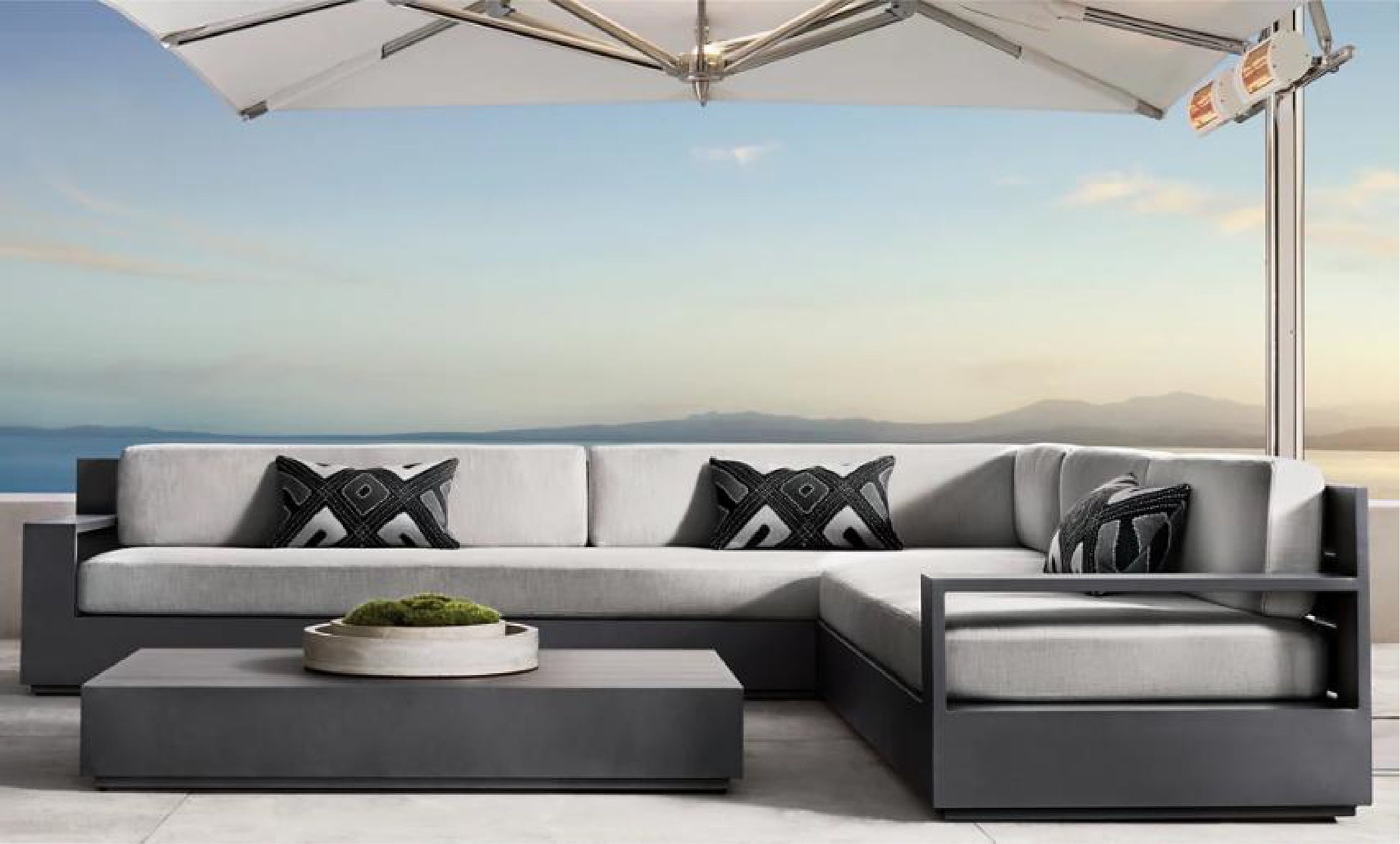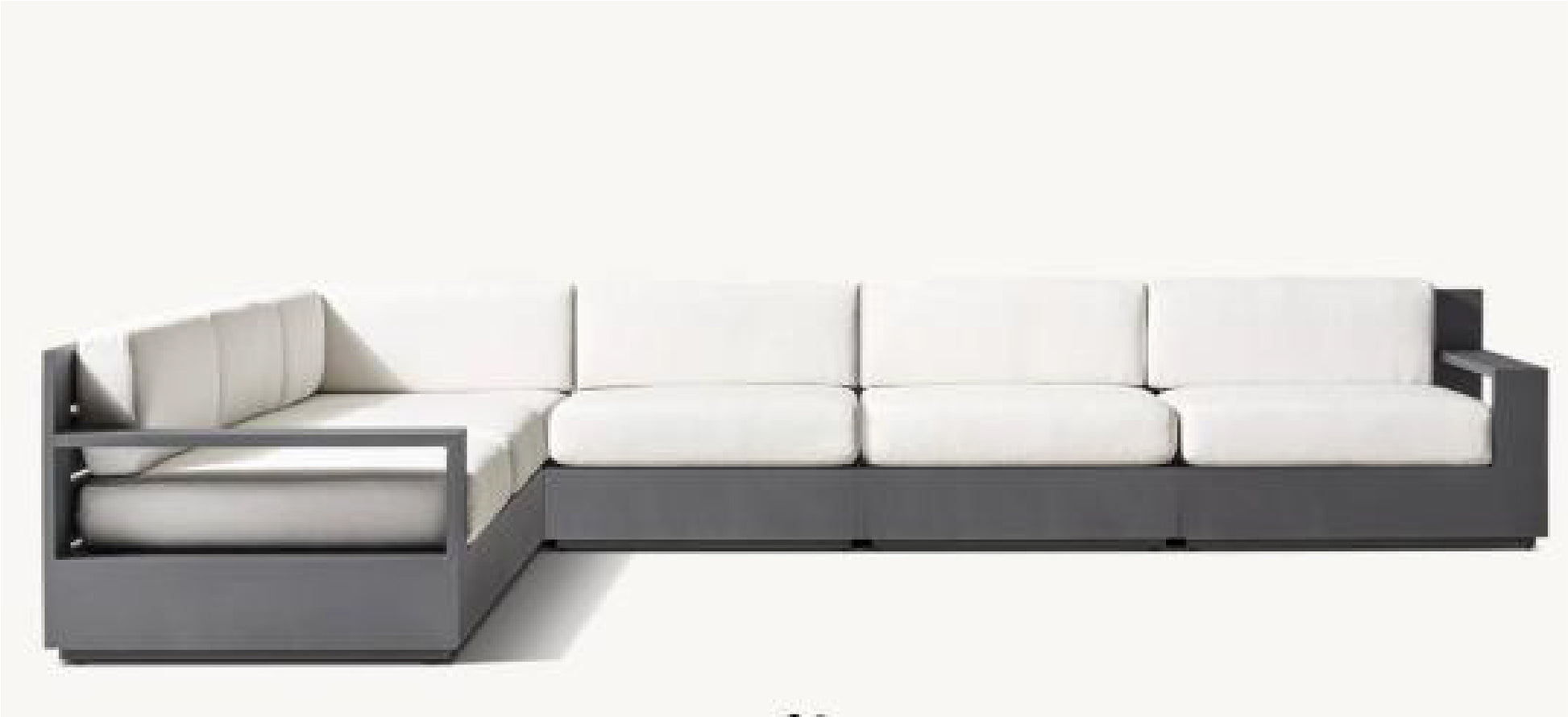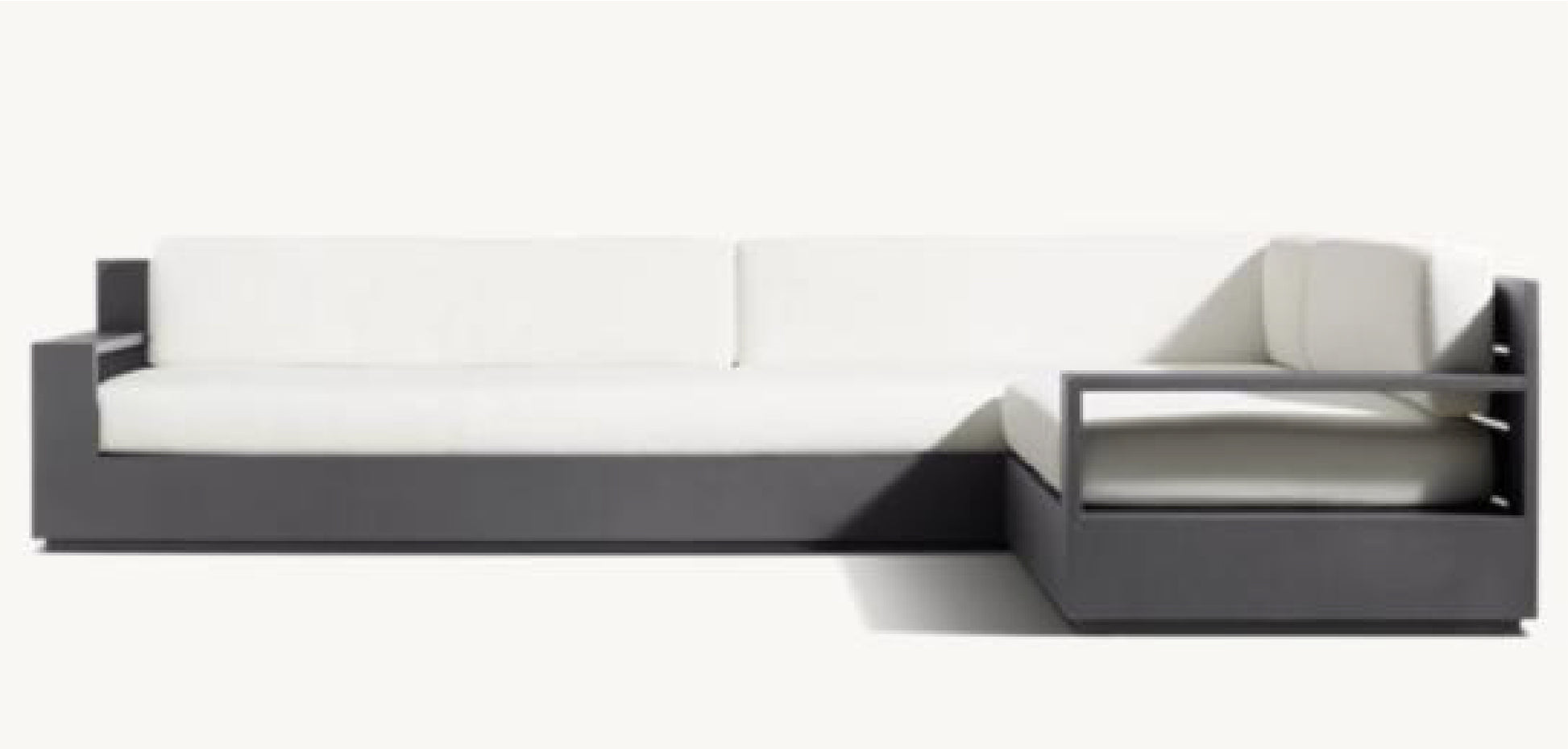 The Bella Left/Right Arm Sofa is available in two-seat or four-seat return configurations, offering clean-lined modularity with striking presence. Its broad frame features signature slatted panels and geometric armrests, grounding the piece with modern elegance. Whether used as a standalone or integrated into a larger sectional layout, its plush cushions and sculptural silhouette bring structure, comfort, and versatility to any indoor or outdoor space.