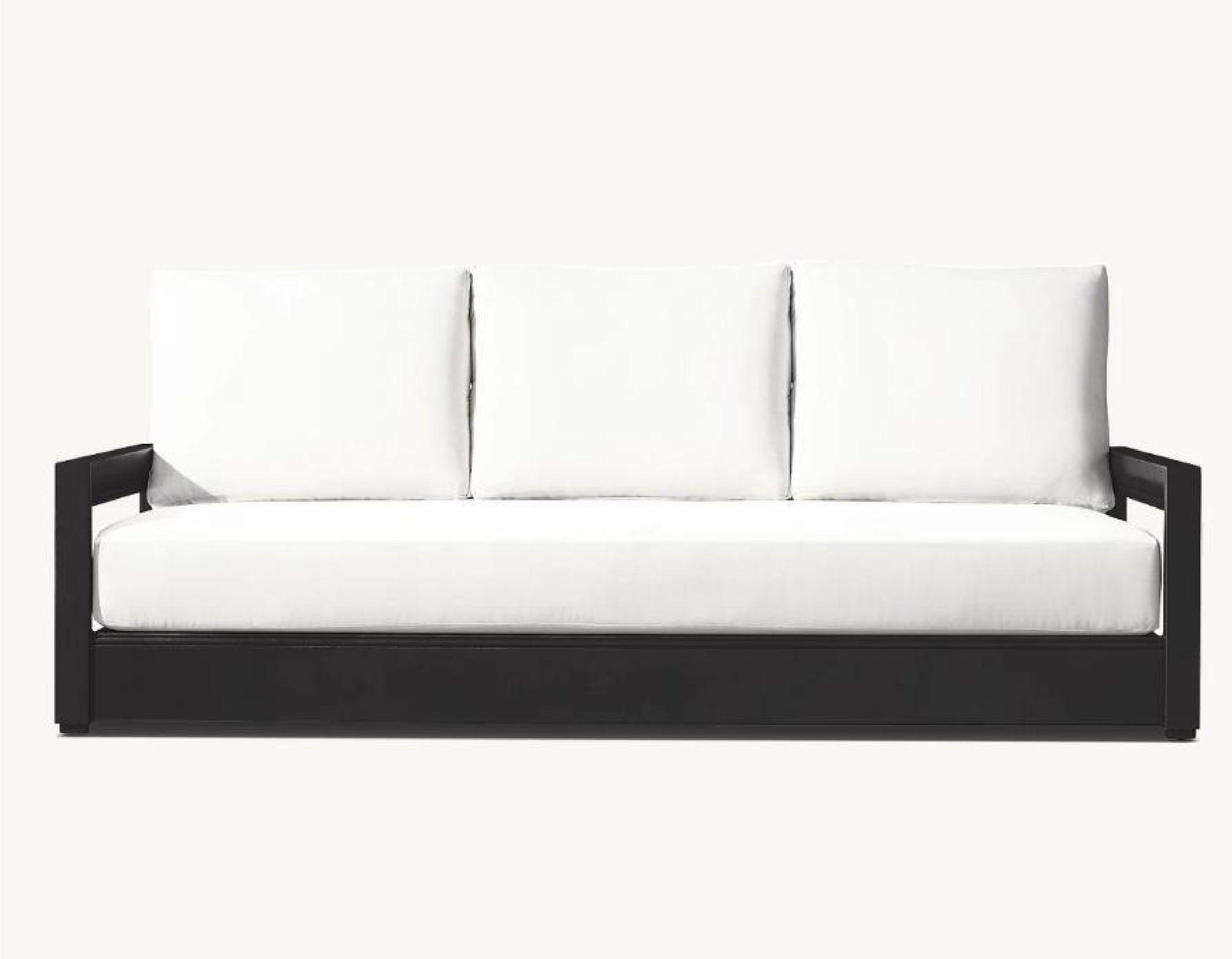 The Cossa Three-Seater Sofa offers a sleek balance of structured form and plush comfort. Featuring a powder-coated aluminum frame with subtly tapered arms and a clean-lined base, it anchors any space with modern elegance. The upright, generously cushioned seat and back provide lasting support—perfect for outdoor lounging with indoor sophistication.