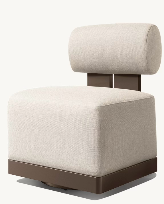 The Vita Swivel Chair redefines comfort with sculptural elegance. Its rounded, cushioned form sits atop a smooth 360° swivel base, combining modern versatility with minimalist luxury. A plush, cylindrical backrest provides ergonomic support, while the powder-coated frame adds a sleek, grounded contrast to the soft, neutral upholstery. Perfect for lounging, hosting, or accenting any contemporary space.